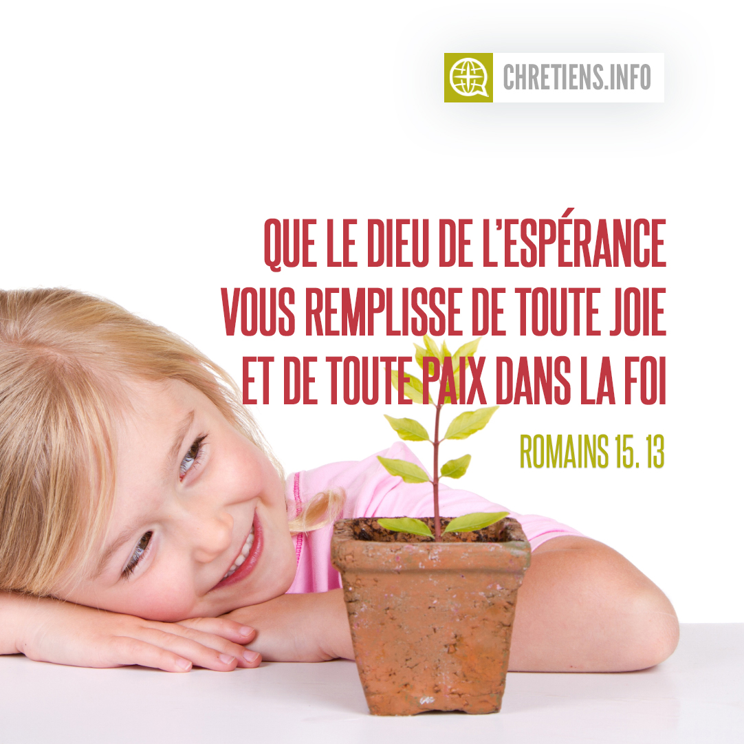 « Que le Dieu de l’espérance vous remplisse de toute joie et de paix dans la foi, afin que vous débordiez d’espérance par la puissance de l’Esprit Saint ! »Rom15,13