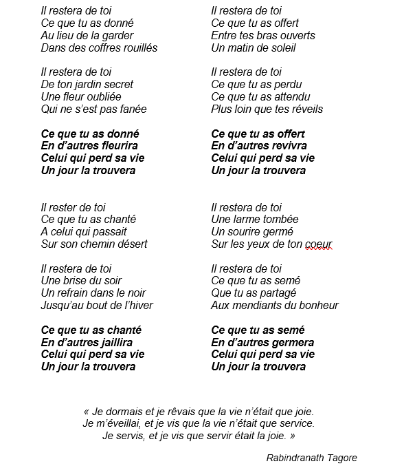 et nous te garderons présent parmi nous